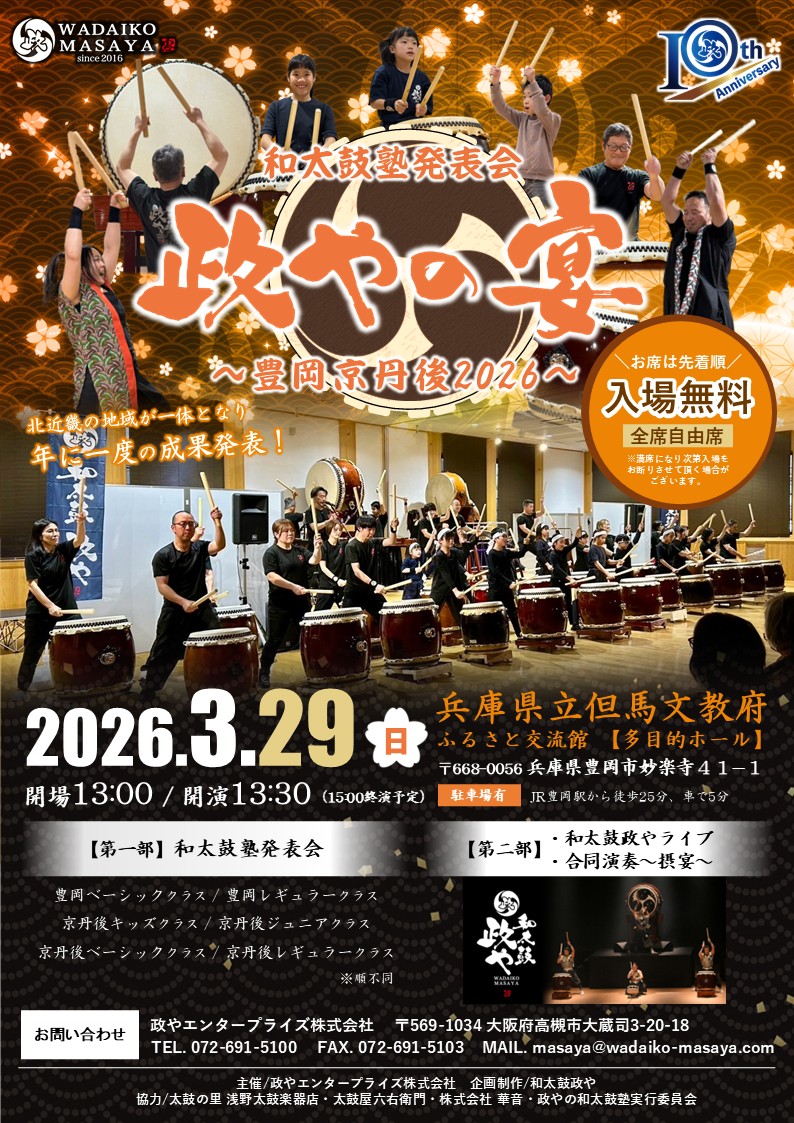 ・政やの和太鼓塾 豊岡京丹後塾 全クラス6クラスの成果発表会
